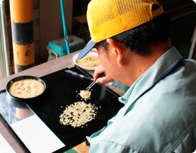 生産基準に基づき、栽培履歴が確認され農産物検査を受検し、上位の1等、2等のみを使用しています。